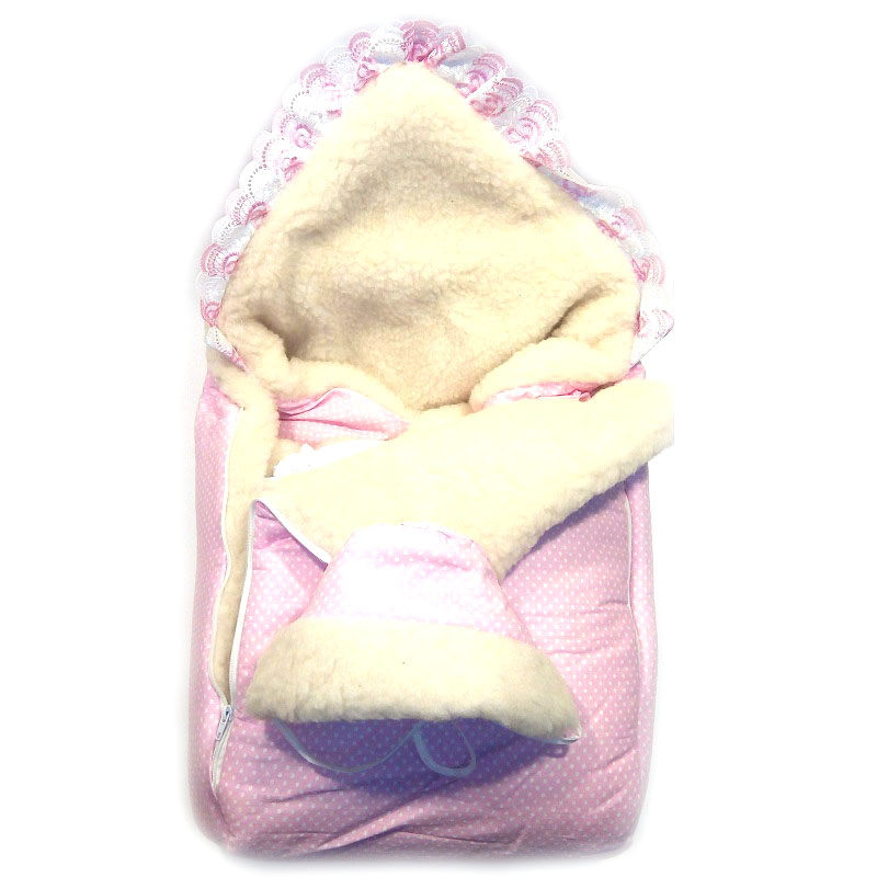 1. Меховой конверт с капюшоном и перед с удобными молниями.